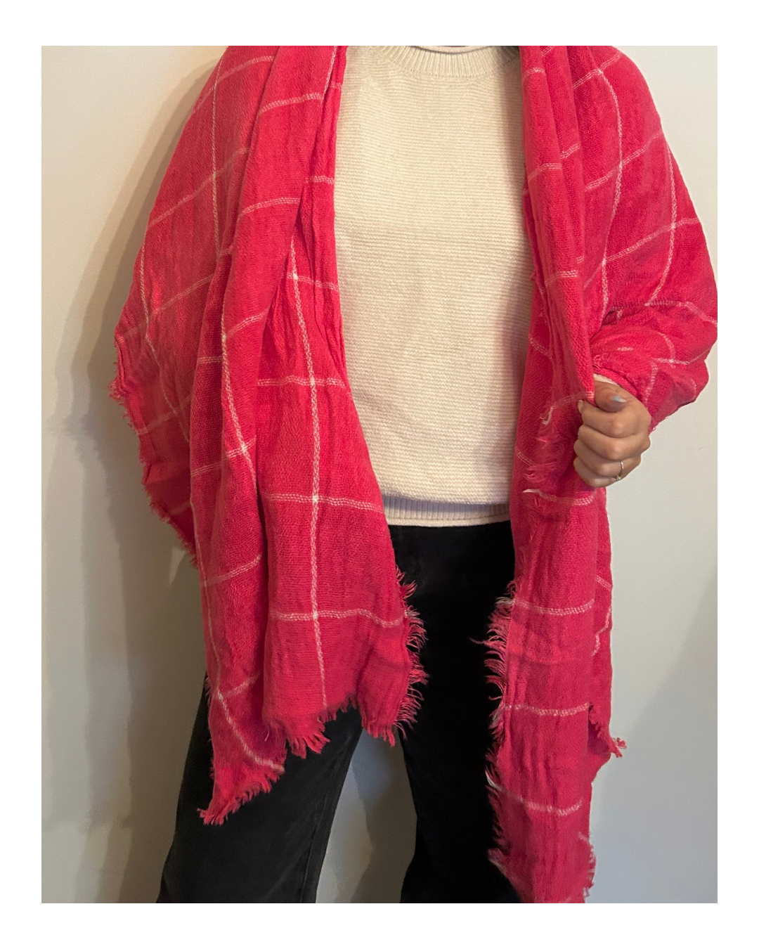 Bufandón combinado A cuadrille en rosado Pink con blanco