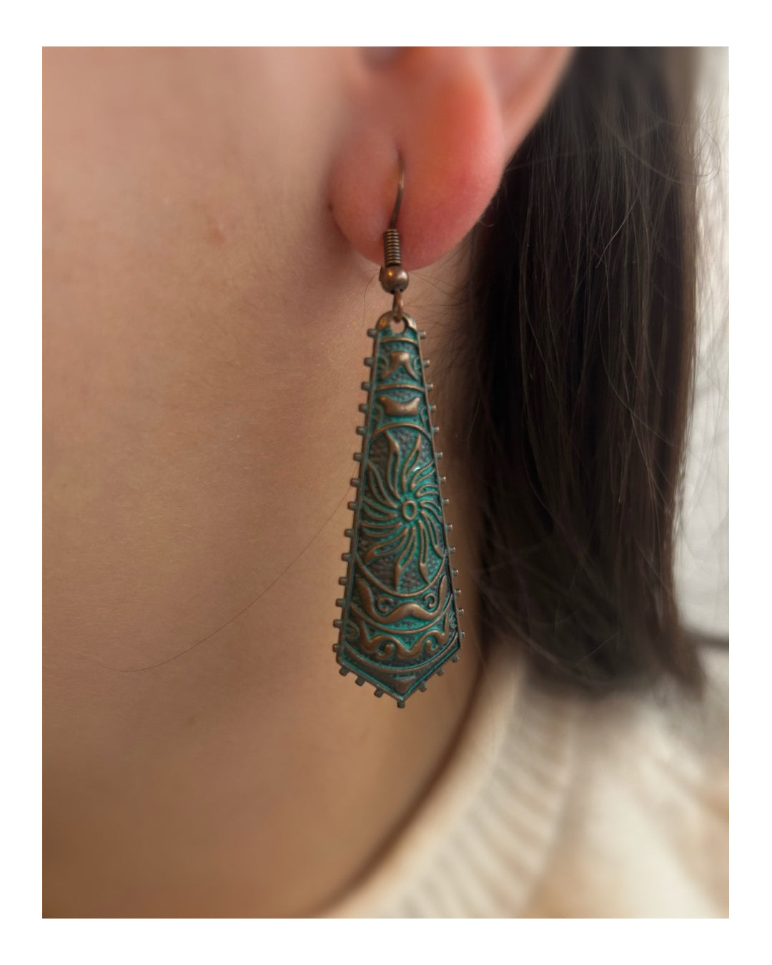 Con diseño bohemio, un sol y combinaciones. En metal colores verde y cobre