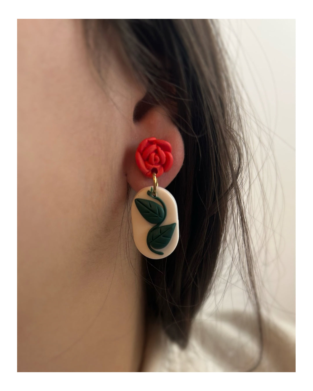 diseño con flor en combinación de colores blanco, rojo y verde