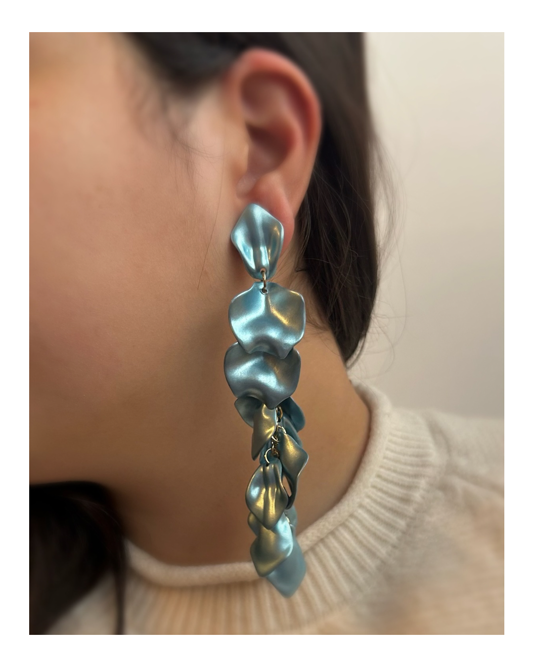 Caravanas pétalos metalizada celeste