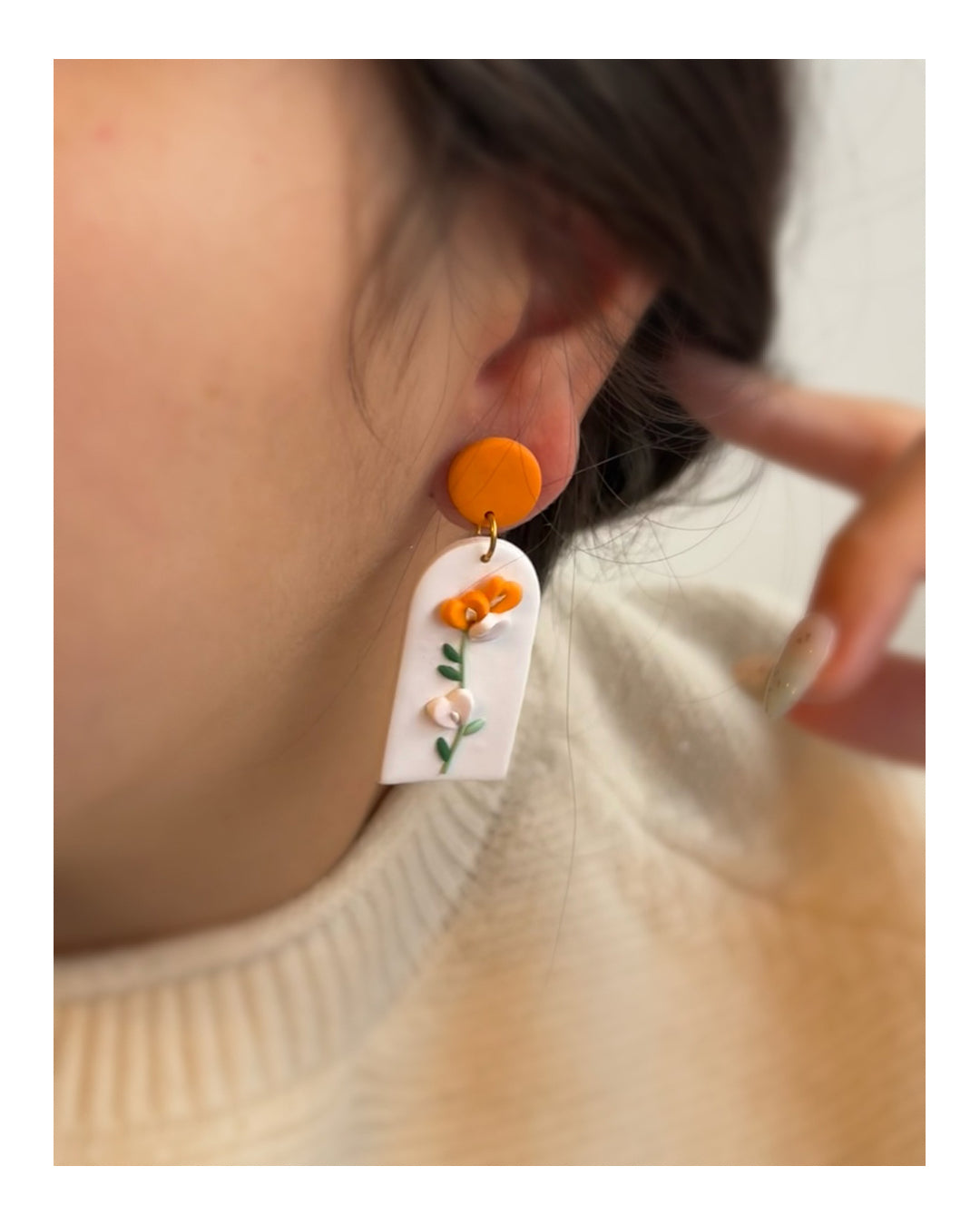 Diseño con flor en combinación de colores blanco, anaranjado y verde